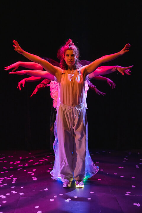 Il lance des paillettes et Marceline est propulsée dans les étoiles ! Marceline vole de monde en monde et se fait de nouvelles·aux ami·es. Elle recouvre de pétales de rose les vomis, écoute les vers magnifiques des clodos et sous ses yeux les reines des discothèques ont de vraies couronnes avec de vrais diamants !